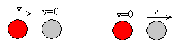 Choque de dos bolasConsideremos primero el caso más simple, la colisión entre una bola de masa m incidente con velocidad v contra otra bola idéntica que está en reposo.