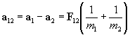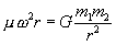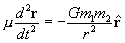 El movimiento de las dos cuerpos es equivalente al movimiento de una partícula de masa reducida m , bajo la acción de la fuerza que describe la interacción mutua, la fuerza de atracción entre las dos masas separadas una distancia r=r1+r2 Eliminando el producto m1·m2