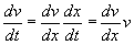 Aunque la atmósfera no es isotérmica, la variación de presión con la altura se puede aproximar a una exponencial decreciente, para una temperatura efectiva de 254 K. donde P0= 1 atm es la presión a nivel del mar. La presión a una altura de x=10000 m es de solamente 0.26 atm. Ecuación del movimientoLa ecuación del movimiento es Podemos escribir esta ecuación de forma alternativa Donde k0 es el valor de la constante de proporcionalidad de la fuerza de rozamiento, al nivel del mar, donde la presión es P0, y la constante λ=7482.2.m-1. Esta ecuación admite una solución en términos de una serie infinita, véase el artículo citado en las referencias. El programa interactivo la resuelve por procedimientos numéricos. Máxima velocidad alcanzada por el paracaidista.Observamos que el paracaidista va incrementando su velocidad a medida que cae, alcanzando un máximo y luego, la velocidad disminuye hasta que llega al suelo. Cuando se alcanza la máxima velocidad dv/dx=0. La relación entre la velocidad máxima vm y la altura xm a la que se produce es donde vl es la velocidad límite que alcanzaría un paracaidista en una atmósfera uniforme. Se puede calcular xm, por procedimientos numéricos si disponemos de la solución analítica v=v(x) que por su complejidad omitimos en esta página.