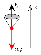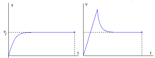 Como el paracaidista es menos aerodinámico que una esfera, pero más aerodinámico que un disco de frente, tomamos para el coeficiente de forma el promedio de los valores dados para estas dos formas en la tabla, es decir, d=0.8. Cuando el paracaidista en caída libe abre el paracaídas, reduce bruscamente su velocidad hasta alcanzar una velocidad límite constante vl, que se obtiene cuando el peso es igual a la fuerza de rozamiento, es decir, cuando la aceleración es cero. -mg+kv2=0 El valor de la velocidad límite es independiente de la velocidad inicial del paracaidista en el momento de abrir el paracaídas, tal como podemos ver en las figuras. Ecuación del movimientoLa ecuación del movimiento cuando se ha abierto el paracaídas la podemos escribir de la forma Integramos la ecuación del movimiento para obtener la velocidad v del móvil en cualquier instante t. Las condiciones iniciales son: v0 es la velocidad del paracaidista en el instante t0 en el que abre el paracaídas. Para integrar se hace el cambio v=z·vl. Se deshace el cambio y se despeja v en función del tiempo (t-t0), Se llega después de algunas operaciones a la expresión. Podemos obtener también la expresión de la posición del móvil en función de la velocidad, haciendo un cambio de variable La ecuación del movimiento se transforma en Que se puede integrar de forma inmediata La altura x del paracaidista en función de su velocidad v es Despejamos la velocidad v en función de la posición x del paracaidista.