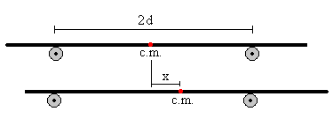 El centro de masas (c.m.) está situado entre las rodillos, equidistante de las