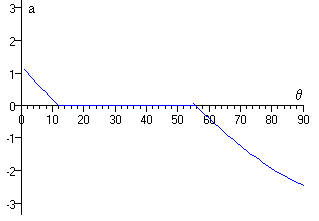 No existen raíces reales, el discriminante de la ecuación de segundo grado es negativo ya que no se cumple que μ2≥m2-1 El bloque desliza a lo largo del plano inclinado hacia arriba para cualquier ángulo θ. Por ejemplo, cuando θ=30º a=0.80 m/s2