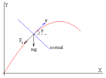 Posición del proyectil dx=ds·cosθ=ρdθ·cosθ Utilizando la ecuación del movimiento en la dirección normal, y teniendo en cuenta que la trayectoria tiene curvatura negativa