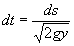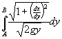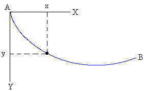 El tiempo que tarda la partícula en recorrer un arco infinitesimal ds en dicha posición es Tenemos que buscar la forma del tobogán de manera que el tiempo total que emplea la partícula en desplazarse desde A hasta B sea mínimo. Por tanto, es preciso hacer mínima la integral Teniendo en cuenta que ds2=dx2+dy2, la integral se escribe en función de x e y y sus derivadas. Empleando el procedimiento de Euler, y teniendo en cuenta que el integrando no es función de x, la solución es Integrando respecto de y Esta integral se resuelve haciendo la sustitución con lo que se obtiene que son de nuevo las ecuaciones paramétricas de una cicloide. Referencia Puig Adam P., Ecuaciones diferenciales aplicado a la Física y Técnica. Biblioteca Matemática, (1970), págs. 324-325. |