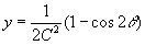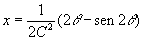 Una vez que tenemos el valor de φ, se calcula el parámetro R, en cualquiera de las dos ecuaciones Propiedades de la cicloideLa cicloide es simétrica, por lo que situamos el eje Y’ como eje de simetría, y el origen en la parte más baja de la curva, tal como se muestra en la figura. La ecuación de la cicloide referida a estos ejes es x’=R(2φ+sen(2φ)) Donde R y φ son dos parámetros La pendiente de la cicloide en la posición x' es
