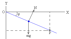 La fuerza neta sobre la partícula es mg·sen|θ|, la aceleración es constante. Las ecuaciones del movimiento son v= g·sen|θ|·t