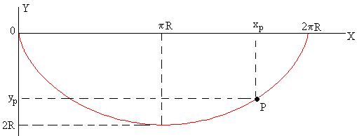 Movimiento a lo largo de una cicloideLa ecuación de la cicloide de la figura es x=R(φ-senφ) Si la cicloide pasa por el punto P (xp, yp) xp=R(φ-senφ) Dividiendo ambas ecuaciones, obtenemos una ecuación trascendente en φ, que resolvemos por procedimientos numéricos