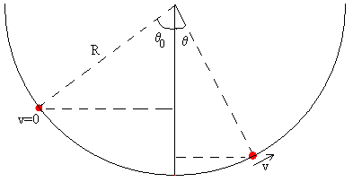 Si la partícula parte de la posición angular –θ0 con velocidad inicial cero. Aplicamos el principio de conservación de la energía para calcular la velocidad v de la partícula cuando se encuentra en la posición θ