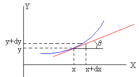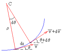 Si el ángulo comprendido entre las dos tangentes es dθ, este es el ángulo que forman las dos normales. La longitud del arco entre los dos puntos considerados es ds=ρ·dθ . Dada la función y=f(x), vamos a determinar la fórmula que nos permite calcular el radio de curvatura ρ de la curva en la posición de abscisa x.