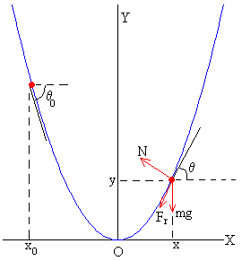 Integramos la ecuación diferencial entre x0 ó θ0 donde la velocidad es 0 y x ó θ donde la velocidad de la partícula es vx.