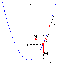 En la posición θ=θ1 la velocidad es cero, esta posición se calcula poniendo vx=0 en la ecuación anterior y resolviendo la ecuación trascendente