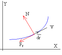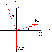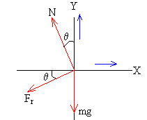 Descomponemos las fuerzas, y escribimos las ecuaciones del movimiento a lo largo del eje X y del eje Y