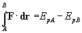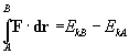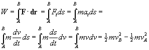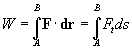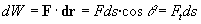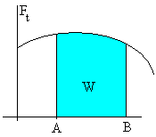 Concepto de trabajoSe denomina trabajo infinitesimal, al producto escalar del vector fuerza por el vector desplazamiento. Donde Ft es la componente de la fuerza a lo largo del desplazamiento, ds es el módulo del vector desplazamiento dr, y q el ángulo que forma el vector fuerza con el vector desplazamiento. El trabajo total a lo largo de la trayectoria entre los puntos A y B es la suma de todos los trabajos infinitesimales