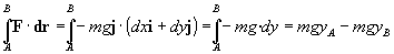 El trabajo infinitesimal dW es el producto escalar del vector fuerza por el vector desplazamiento dW=F·dr=(Fxi+Fyj)·(dxi+dyj)=Fxdx+Fydy