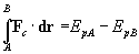 Fuerza conservativa. Energía potencialUn fuerza es conservativa cuando el trabajo de dicha fuerza es igual a la diferencia entre los valores inicial y final de una función que solo depende de las coordenadas. A dicha función se le denomina energía potencial. El trabajo de una fuerza conservativa no depende del camino seguido para ir del punto A al punto B. El trabajo de una fuerza conservativa a lo largo de un camino cerrado es cero. Ejemplo
