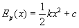 El trabajo de esta fuerza es, cuando la partícula se desplaza desde la posición xA a la posición xB es La función energía potencial Ep correspondiente a la fuerza conservativa F vale El nivel cero de energía potencial se establece del siguiente modo: cuando la deformación es cero x=0, el valor de la energía potencial se toma cero, Ep=0, de modo que la constante aditiva vale c=0.