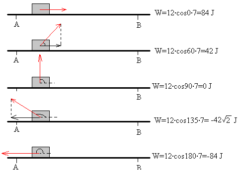 Cuando la fuerza es constante, el trabajo se obtiene multiplicando la componente de la fuerza a lo largo del desplazamiento por el desplazamiento. W=Ft·s Ejemplo: Calcular el trabajo de una fuerza constante de 12 N, cuyo punto de aplicación se traslada 7 m, si el ángulo entre las direcciones de la fuerza y del desplazamiento son 0º, 60º, 90º, 135º, 180º.