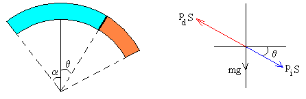 En esta página, vamos a estudiar el denominado modelo no simétrico de Alben que consiste en un tubo hueco de sección S, cerrado por ambos extremos, lleno con un gas ideal y que se dobla en forma de arco de radio r y ángulo 1+α radianes tal como se muestra en la figura.