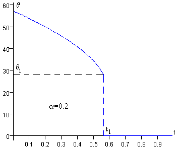 A la temperatura t1, se produce un cambio brusco en la posición del émbolo desde θ1 a 0. Por encima de esta temperatura el émbolo alcanza la posición de equilibrio estable θ=0. La temperatura t1 y la posición del émbolo θ1 se obtienen resolviendo el sistema de dos ecuaciones con dos incógnitas: