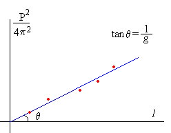 Se emplea un instrumento mucho más manejable, un péndulo simple de longitud l. Se mide el periodo de varias oscilaciones para minimizar el error de la medida y se calculan el periodo P de una oscilación. Finalmente, se despeja g de la fórmula del periodo. De la fórmula del periodo establecemos la siguiente relación lineal.