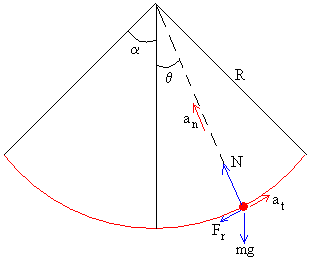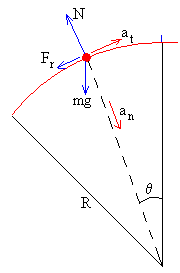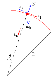 La ecuación del movimiento a lo largo de la dirección tangencial es mat=-mg·senθ-Fr Combinando ambas ecuaciones obtenemos