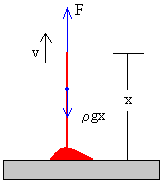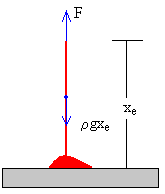 Consideremos una cadena delgada, idealmente flexible, de densidad ρ que está apilada en el suelo. Estudiaremos el movimiento de un extremo de la cadena cuando se le aplica una fuerza constante F. Esta fuerza podría provenir de un globo atado al extremo de la cadena. Dicha fuerza sería igual a la diferencia entre el empuje y el peso del globo. Situando el origen en el suelo, la posición del extremo de la cadena es x>0. Supondremos que en determinado instante t, hay una parte de la cadena x en movimiento con velocidad v y la otra parte, en reposo sobre el suelo.