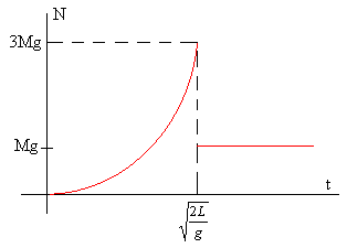 Siendo M=ρL la masa de la cadena. Cuando llega el último eslabón de la cadena al suelo x=0. N=3Mg Si dejamos caer la cadena sobre el plato de una balanza, ésta medirá una fuerza máxima 3Mg..