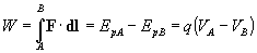 Trabajo realizado por el campo eléctricoEl trabajo que realiza el campo eléctrico sobre una carga q cuando se mueve desde una posición en el que el potencial es VA a otro lugar en el que el potencial es VB es
