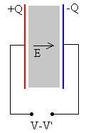 Sea un condensador plano-paralelo cuyas láminas hemos cargado con cargas +Q y Q, iguales y opuestas. Si entre las placas se ha hecho el vacío y se mide una diferencia de potencial V0, su capacidad y la energía que acumula serán Si introducimos un dieléctrico se observa que la diferencia de potencial disminuye hasta un valor V. La capacidad del condensador con dieléctrico será donde k se denomina constante dieléctrica La energía del condensador con dieléctrico es la energía de un condensador con dieléctrico disminuye respecto de la del mismo condensador vacío.