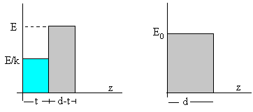 El portaobjetos de vidrio tiene un espesor t=1 mm, una altura de a=7.5 cm, una masa de m=4.37 g, y una constante dieléctrica k=5. El portaobjetos está sujeto por una larga cuerda de modo que la distancia entre su centro y el punto de suspensión es de l=1.34 m. En la experiencia real (véase el artículo citado en las referencias), la fuente suministra una diferencia de potencial alterna, debido a que con corriente continua las superficies del portaobjetos se polarizan y se pegan inmediatamente a una u otra placa del condensador. Campo eléctrico Supondremos que el campo eléctrico en el interior del condensador plano-paralelo vacío E0=V/d es constante y perpendicular a las placas, y es despreciable fuera del condensador. Cuando el dieléctrico se ha introducido una distancia x entre las placas del condensador, el campo en la región rectangular de dimensión a de alto y x de ancho cambia. En la figura, se representa el campo eléctrico en dicha región en función de la distancia z a una de las placas. En el interior del dieléctrico, el campo se reduce a E/k, (k es la constante dieléctrica del material) y fuera del dieléctrico el campo es E. La suma de las áreas de los dos rectángulos es la diferencia de potencial constante V. V=(E/k)t+E(d-t) Energía electrostática Para hallar la energía electrostática dividimos el volumen del condensador en tres zonas.