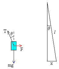 Como la distancia entre le centro del portaobjetos y el punto de suspensión l es muy grande comparado con el desplazamiento x del portaobjetos, el ángulo θ es pequeño, senθ≈tanθ