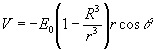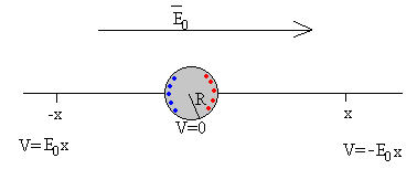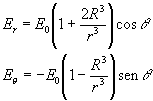 Las componentes del campo eléctrico en coordenadas polares son Potencial El potencial en un punto P de coordenadas (r, q ) es Como vemos cumple que cuando r se hace grande, el potencial V tiende a E0rcosq =-E0x, y para r=R, el potencial es V=0.