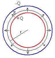 Situamos imaginariamente, una superficie esférica concéntrica de radio r, para determinar el campo eléctrico en las distintas regiones aplicando la ley de Gauss.