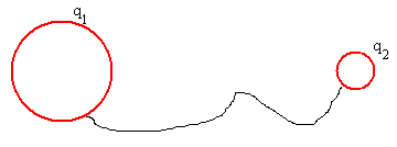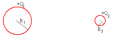 Dos esferas conductorasSean dos esferas conductoras de radios R1 y R2 respectivamente, que están inicialmente aisladas una de la otra y cargadas con cargas Q1 y Q2 respectivamente. Los potenciales de las superficies de las dos esferas son, respectivamente