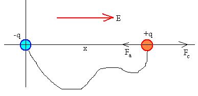Cuando la segunda esfera está a una distancia x, la fuerza de atracción entre dos cargas puntuales +q y -q vale