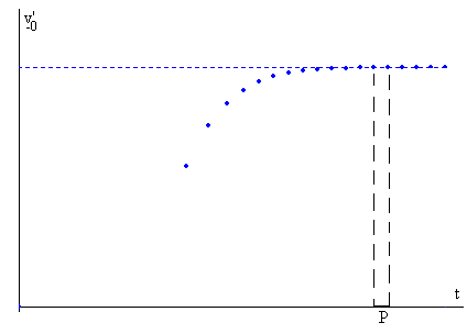 El choque inelástico proporciona el mecanismo de pérdida de energía, de modo que al cabo de un cierto tiempo t, teóricamente infinito, se alcanza el estado estacionario, el disco completa una oscilación con un periodo P aproximadamente constante. Cuando nos aproximamos al estado estacionario v’-0≈v-0