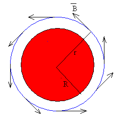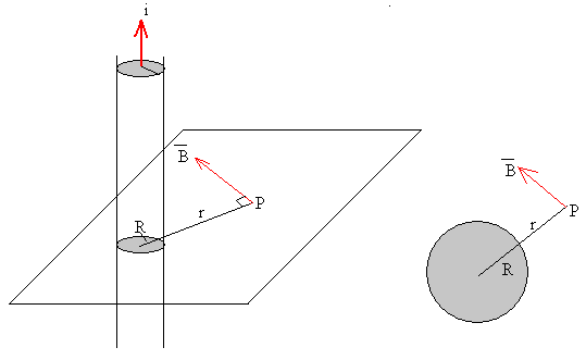 Campo magnético producido por una corriente rectilínea indefinida de sección circular.Apliquemos la ley de Ampère a una corriente rectilínea indefinida uniformemente distribuida en su sección y que circula a lo largo de un cilindro radio interior a.