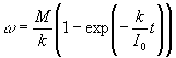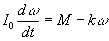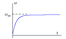 Se puede demostrar (véase el artículo citado en las referencias) que el momento M no cambia si la rueda en vez de ser maciza consta de cuatro brazos que sostienen un anillo de cobre tal como se muestra en el applet al final de esta página. Fuerza de rozamientoEn el eje del disco se produce un momento debido al rozamiento entre el eje y los rodamientos que se puede suponer que es proporcional a la velocidad angular de la rueda (ley de Petroff). Mr=-kw La constante de proporcionalidad depende del radio del eje, viscosidad del aceite lubrificante, etc. Ecuación del movimientoLa ecuación del movimiento de un sólido rígido en rotación alrededor de un eje fijo es Donde I0 es el momento de inercia de la rueda. Integramos esta ecuación con las condiciones iniciales t=0, w =0, obteniendo la velocidad angular w de la rueda en cualquier instante t.