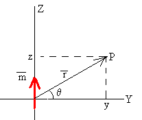 En el applet se representa las líneas del campo magnético producido por una bobina de pequeño radio a cuyo momento dipolar magnético m se señala mediante una flecha de color rojo. Líneas de campo magnético