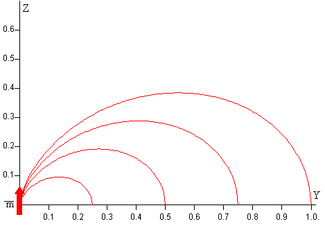 La ecuación diferencial de las líneas de fuerza para el dipolo magnético es Haciendo el cambio de variable Z=z2, Y=lny Para integrar esta ecuación diferencial de primer orden escribimos Z=u·v Igualamos a cero el paréntesis La ecuación queda La solución de la ecuación diferencial es, donde C es una constante de integración Deshaciendo el cambio de variable Escribiendo la constante C=D2/3, D tiene dimensiones de longitud En la figura, se muestra las líneas del campo magnético para D=0.25, 0.5, 0.75 y 1.0