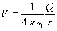 El potencial del punto P debido a la carga Q es un escalar y vale Un campo eléctrico puede representarse por líneas de fuerza, líneas que son tangentes a la dirección del campo en cada uno de sus puntos. En la figura, se representan las líneas de fuerza de una carga puntual, que son líneas rectas que pasan por la carga. Las equipotenciales son superficies esféricas concéntricas.