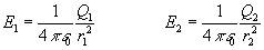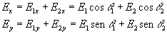 Campo eléctrico de un sistema de dos cargas eléctricasCuando varias cargas están presentes el campo eléctrico resultante es la suma vectorial de los campos eléctricos producidos por cada una de las cargas. Consideremos el sistema de dos cargas eléctricas de la figura.
