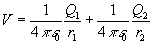 El potencial en el punto P debido a las dos cargas es la suma de los potenciales debidos a cada una de las cargas en dicho punto. Las superficies equipotenciales cortan perpendicularmente a las líneas de campo. Representaremos en el applet la intersección de las superficies equipotenciales con el plano XY. La ecuación de las líneas equipotenciales es