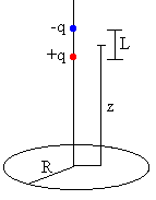 ActividadesEn la experiencia descrita en el artículo citado en las referencias, se emplea un imán cilíndrico de 5 cm de longitud y 1 cm de diámetro. La bobina tiene N=154 espiras de R=20 cm de radio. Cuando la longitud del imán es más grande que su diámetro, y este es mucho menor que el diámetro de las espiras, el imán se puede aproximar a un dipolo magnético formado por dos cargas magnéticas iguales y opuestas separadas por una longitud L. El momento magnético del imán utilizado es de m=2.1 Am2 Se introduce
