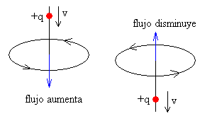 Midiendo el campo magnético B a una distancia z del centro del imán, podemos determinar el momento magnético m del imán. Flujo y fem producidos por la carga q+