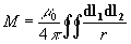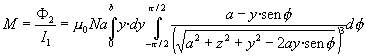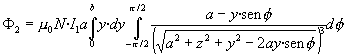 Tenemos que calcular la integral doble Si el circuito primario consta de N1 espiras iguales apretadas, y el circuito secundario consta de una sola espira, el coeficiente de inducción mutua es