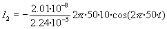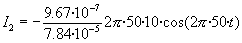 Se representa las componentes del campo magnético By y Bz en los siguientes puntos (0, z), (b/2, z) y (-b/2, z), mediante flechas de color azul. Se representa la corriente en la bobina (primario) y la corriente inducida en la espira (secundario) en función del tiempo en la parte derecha del applet. En la parte superior del applet, se muestra el valor del coeficiente de inducción mutua M. Se sugiere al lector que compruebe la ley de Lenz. El sentido de la corriente inducida cada cuarto de periodo. Ejemplo 1 Si el radio de la espira b=3.5 cm y la distancia z=5 cm el coeficiente de inducción mutua vale M=9.67·10-7 H. La resistencia de la espira vale R=2.24·10-3·0.035=7.84·10-5 W Si por el primario circula una corriente de frecuencia f=50 Hz y la amplitud de la intensidad vale I01=10 A. La intensidad inducida que circula por la espira (secundario) es La amplitud de la intensidad inducida es I02=38.7 A Ejemplo 2: La espira tiene un radio b pequeño y está alejada de la bobina Por ejemplo b=1 cm y z=10 cm. El coeficiente de inducción mutua podemos calcularlo por la fórmula aproximada Mediante cálculo numérico, empleando integrales elípticas, el valor que obtenemos es de 2.01·10-8 H La resistencia de la espira es R=2.24·10-3·0.01=2.24·10-5 W Si por el primario circula una corriente de frecuencia f=50 Hz y la amplitud de la intensidad vale I01=10 A. La intensidad inducida que circula por la espira (secundario) es La amplitud de la intensidad inducida es I02=2.82 A