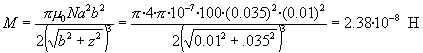 Se pulsa en el botón titulado Calcular El programa interactivo calcula el coeficiente de inducción mutua M en unidades de μ0=4π·10-7 .