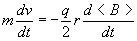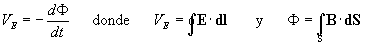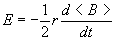 Fundamentos físicosLos fundamentos físicos del betatrón combinan, la ley de Faraday, y el movimiento de partículas cargadas en un campo eléctrico y en un campo magnético. Ley de Faraday-HenryEn primer lugar, determinaremos el campo eléctrico en cada punto del espacio, producido por un campo magnético que tiene simetría axial (su módulo depende solamente de la distancia r al eje Z), pero a su vez, cambia con el tiempo. El camino cerrado elegido es una circunferencia de radio r, centrada en el eje Z. Como el flujo varía con el tiempo, se induce una fem dada por la ley de Faraday Debido a la simetría axial, el campo eléctrico generado E solamente depende de r, es constante y tangente en todos los puntos de la circunferencia de radio r, de modo que VE=E·2p r El flujo del campo magnético es F =<B>p r2. Donde <B> es el campo medio existente en la región que cubre el área S=p r2. Despejando el módulo del campo eléctrico Movimiento de las partículas cargadas