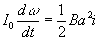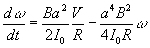El momento de esta fuerza respecto del eje del disco es dM=x·dF, y el momento total La fuerza resultante F=iBa que produce un momento total M estará aplicada en el punto medio del radio, a/2 tal como se muestra en la primera figura. La ecuación de la dinámica de rotación del disco alrededor de su eje fijo es I0a =M